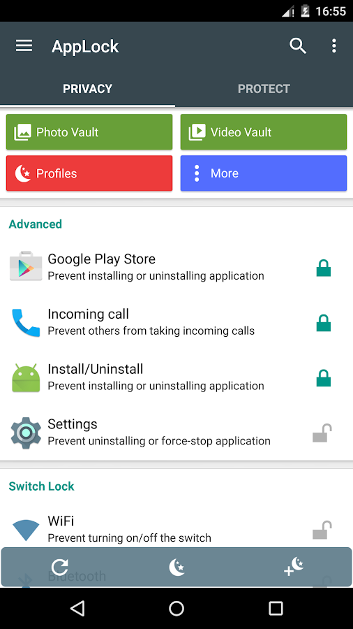 • Protects any apps using password or pattern• Photo Vault, hide pictures