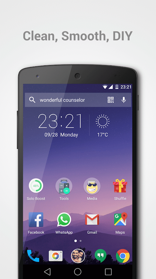 Solo Launcher ranks Top 3 on Google play launcher category apps, over 100 million users use Solo Launcher in the whole world. It is a small yet fast launcher that boosts your mobile phone performances. Solo Launcher saves your memory space, makes your phone use smooth and fun.