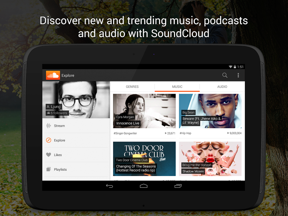Millions of people use SoundCloud to listen to music and audio for free. Wherever you are. Whatever you’re doing. The SoundCloud app lets you hear more. More hip hop. More rock. More electronic. More classical. More house, jazz, audiobooks, sports…