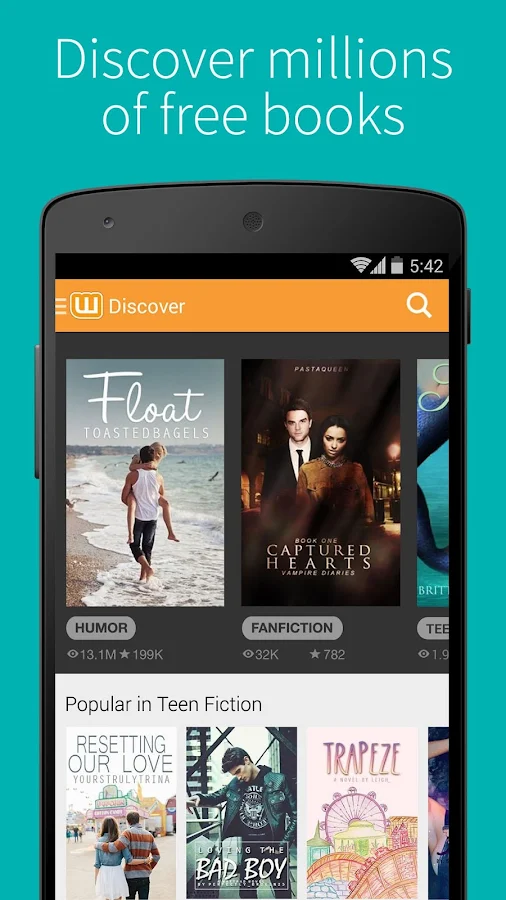 • Choose from popular romance, fanfic, non-fiction, mystery, fantasy, memoirs, travelogues, sci-fi, short stories and memes.